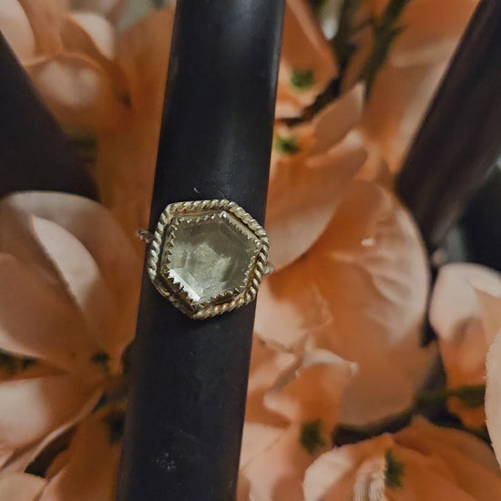 Use the Aegis Shield ring to amplify your intentions and regulate your energy. Made with sterling silver and quartz this handcrafted ring comes in two sizes.